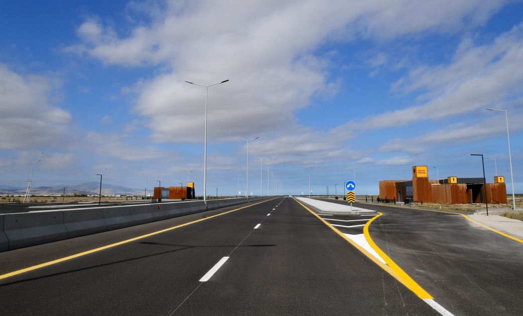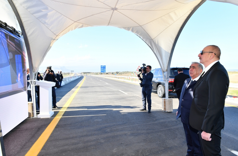 Diqqətə çatdırılıb ki, bu magistral yolun tikintisi Azərbaycan Avtomobil Yolları Dövlət Agentliyinin nəzarəti altında 5 hissə üzrə həyata keçirilib. Yolboyu 40 yol ötürücüsü və körpü, 52 alt keçid, 6 ödəmə və yükə nəzarət məntəqəsi, 2 mindən çox yol nişanı və məlumat lövhəsi quraşdırılıb. Həmçinin hər hansı maneənin yola çıxmasının qarşısını almaq üçün tədbirlər görülüb. O da bildirildi ki, yeni yol mövcud yoldan 13 kilometr qısadır.