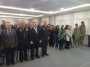 Daha sonra şəhidlərimizin əziz xatirəsi bir dəqiqəlik sükutla yad edilərək dövlət himni səsləndirildi.