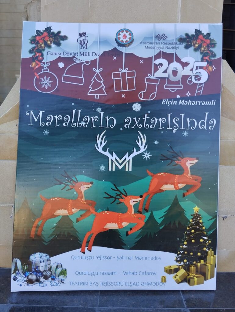 Gəncə Dövlət Milli Dram Teatrında “Yeni il” ilə əlaqədar gənc yazıçı Elçin Məhərrəmin “Maralların axtarışında” adlı pyesi səhnələşdirilib. Tamaşa bayram günlərində teatrsevərlərə təqdim olunub.