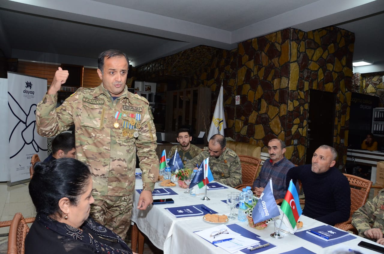 “Dayaq” Vətən Müharibəsi Əlilləri və Şəhid ailələrinə dəstək ictimai birliyinin ofisində baş tutan tədbirdə şəhid ailələri, qazilər və müharibə veteranları iştirak edib.