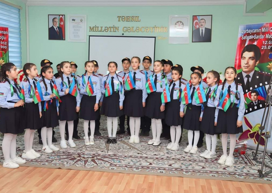 Daha sonra Milli qəhrəmanlarımızın həyatından bəhs edən videoçarx və şagirdlər tərəfindən şəhidlərimizə həsr edilən ədəbi-bədii kompozisiya nümayiş olunub.